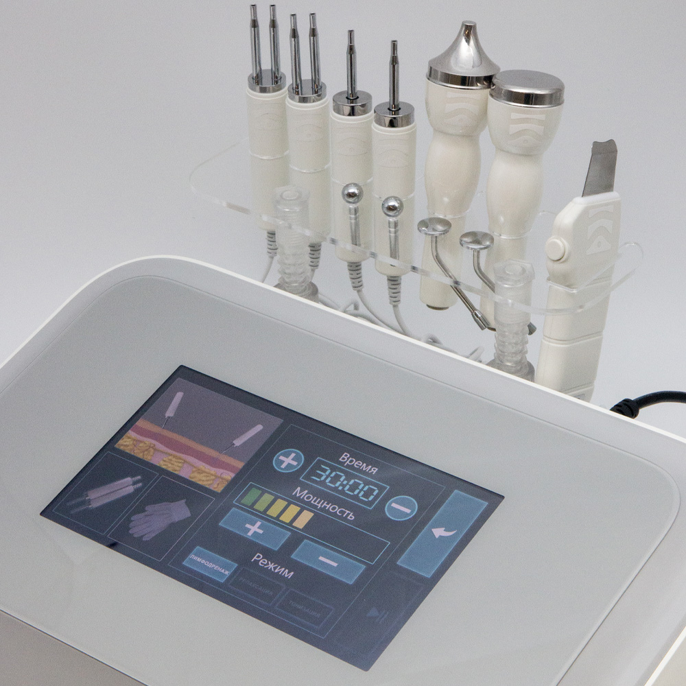 косметологическим аппаратом серии ПРО, который включает в себя 3 косметологические процедуры: