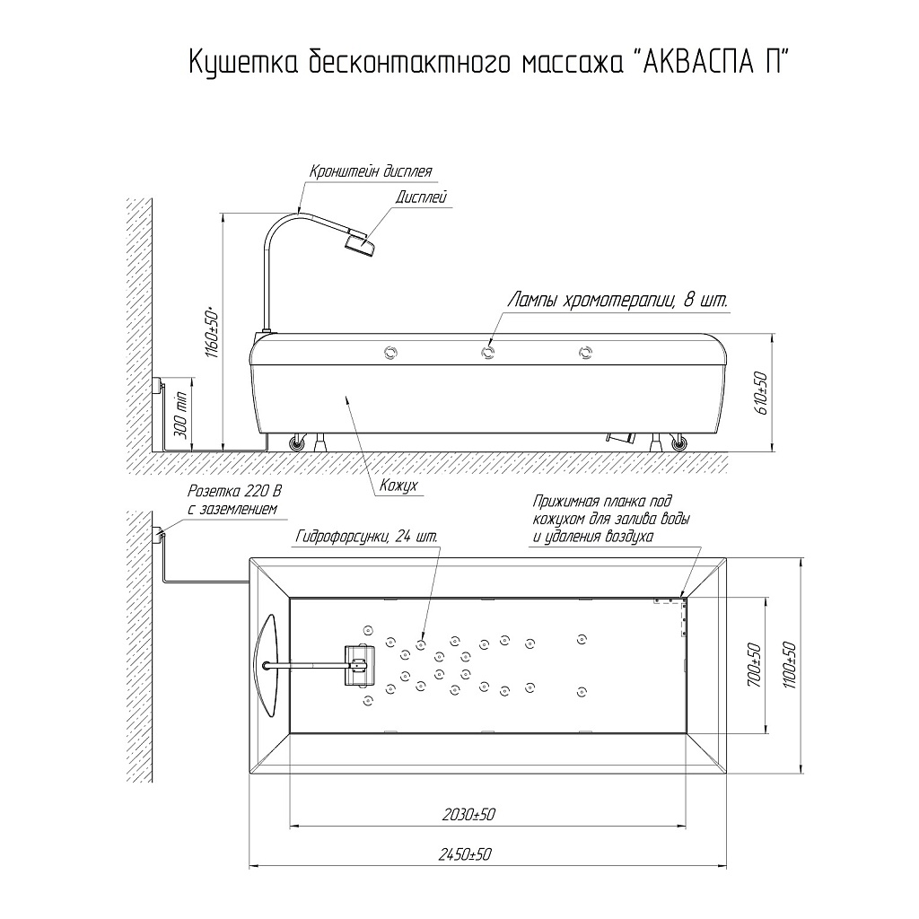 Евро - розетка мощностью до 3,5 КВт, 220 В, 16 А. Для ванны Акваспа необходимо заготовить 220-240 литров дистиллированной воды, залив единоразовый на срок до 1,5 -2х лет.