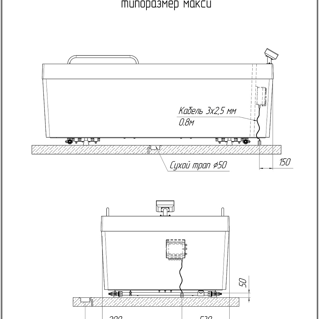 Размеры ванны (ДхШхВ), мм 2610х1455х1100